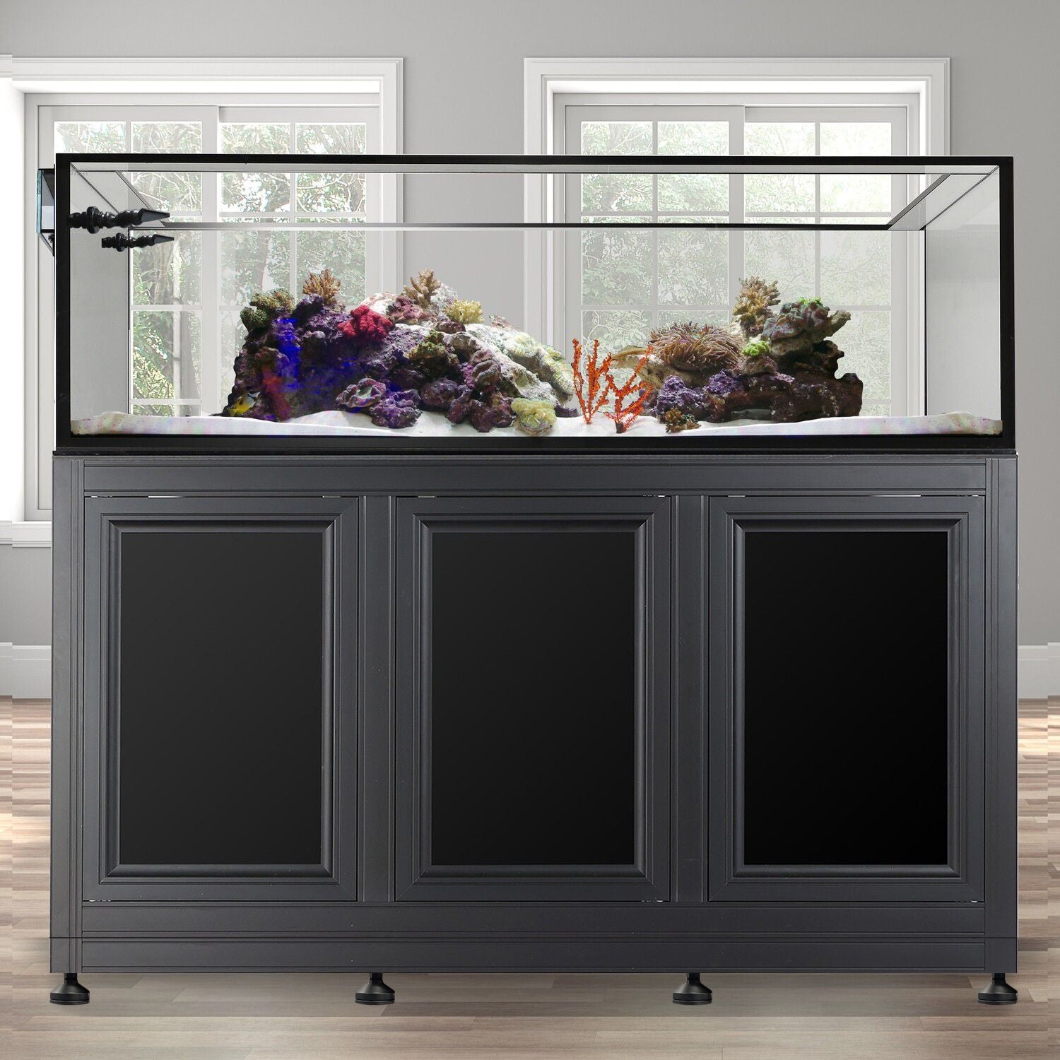 Aluminum has been a tried-and-true element for custom commercial stands, because of its versatility, strength, and the fact that it is very light weight. Innovative Marine just brought that technology to the aquarium industry to create a truly singular aesthetic aquarium stand that is modular in construction, easy to set up, and is resistant to corrosion and swelling in both fresh and marine environments.