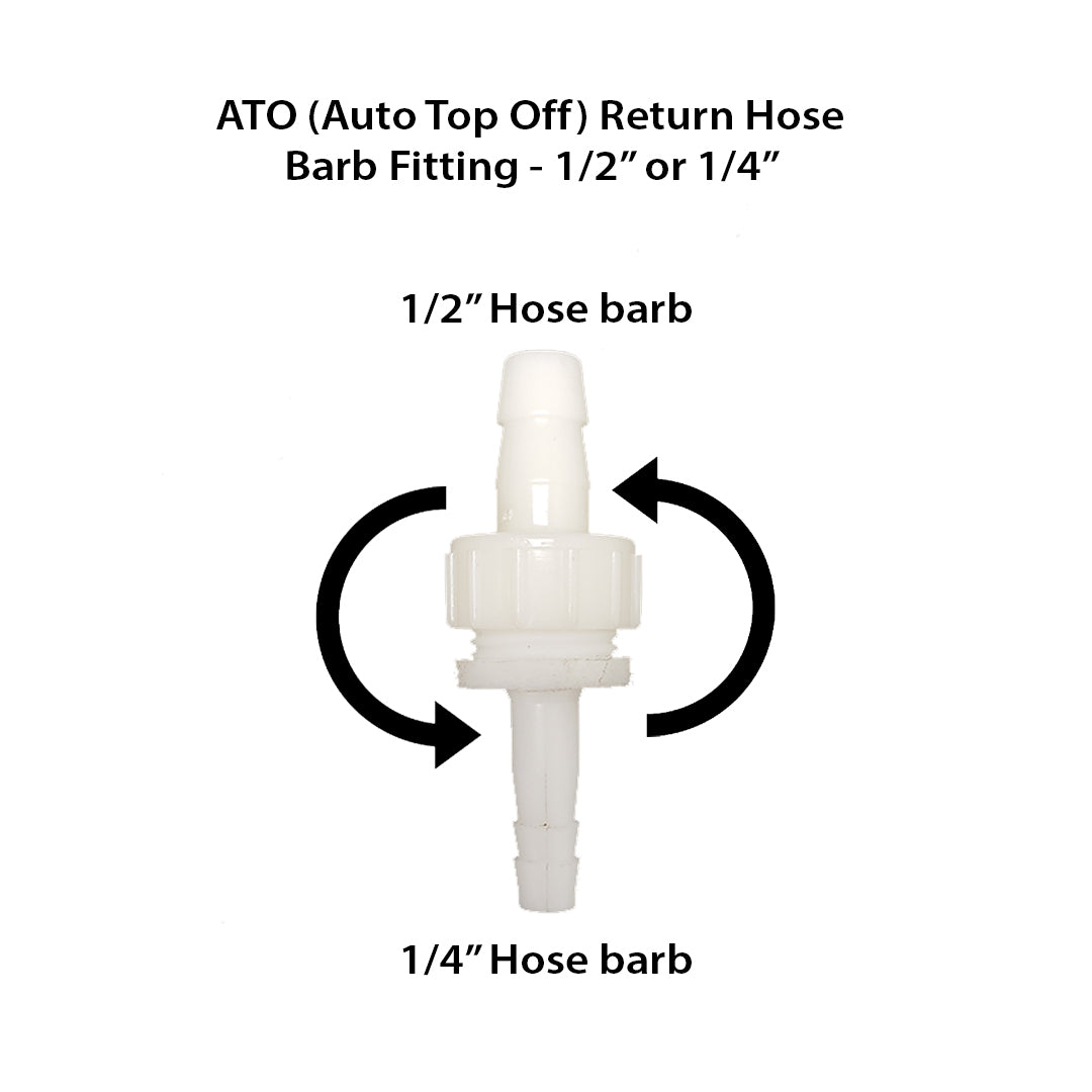 - 1x Reversible 1/4" to 1/2" ATO Reurn Hose Barb